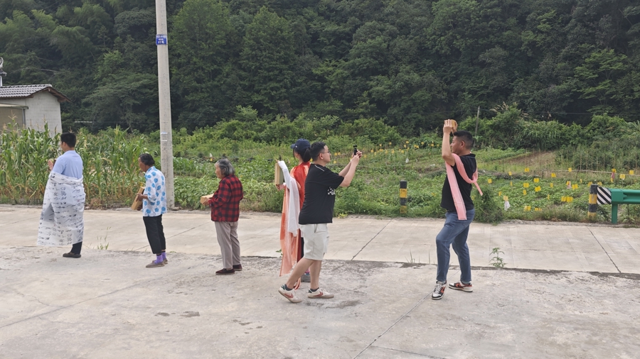 游民们给村干部拍视频。受访者供图